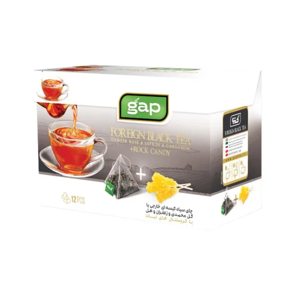 چای سیاه با نبات گپ از بهترین مزارع چای تهیه شده و داخل بگ های هرمی عرضه می شود. یکی از بهترین چای ها برای کنترل کلسترول، هضم غذا و بهبود سنگ کلیه می باشد. همچنین، چای سیاه گپ با کریستال های نبات زعفرانی عرضه می شود که بهترین عطر و طعم را به چایی می دهد و خواص متعددی نیز دارد.خواص چای در کنار خواص نبات باهم یک نوشیدنی پر از انرژی میشود.
